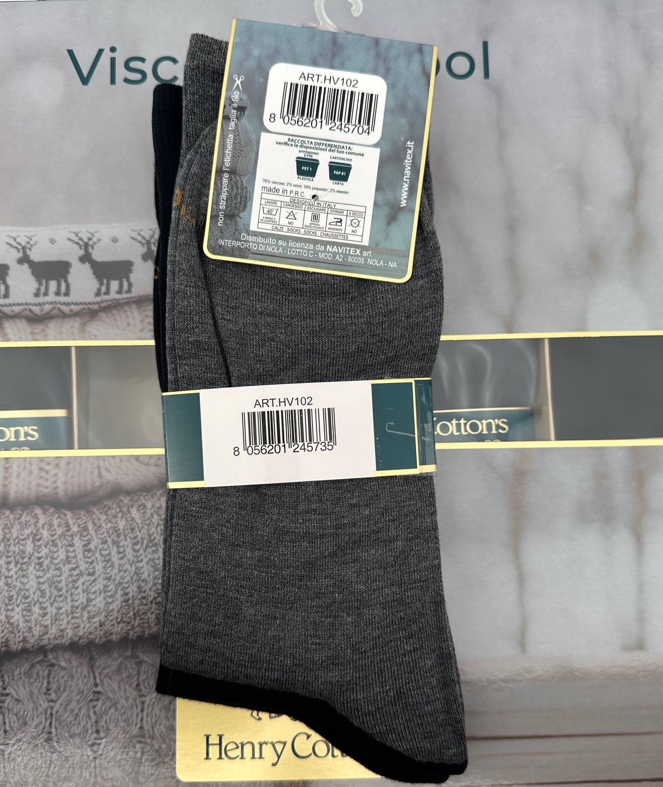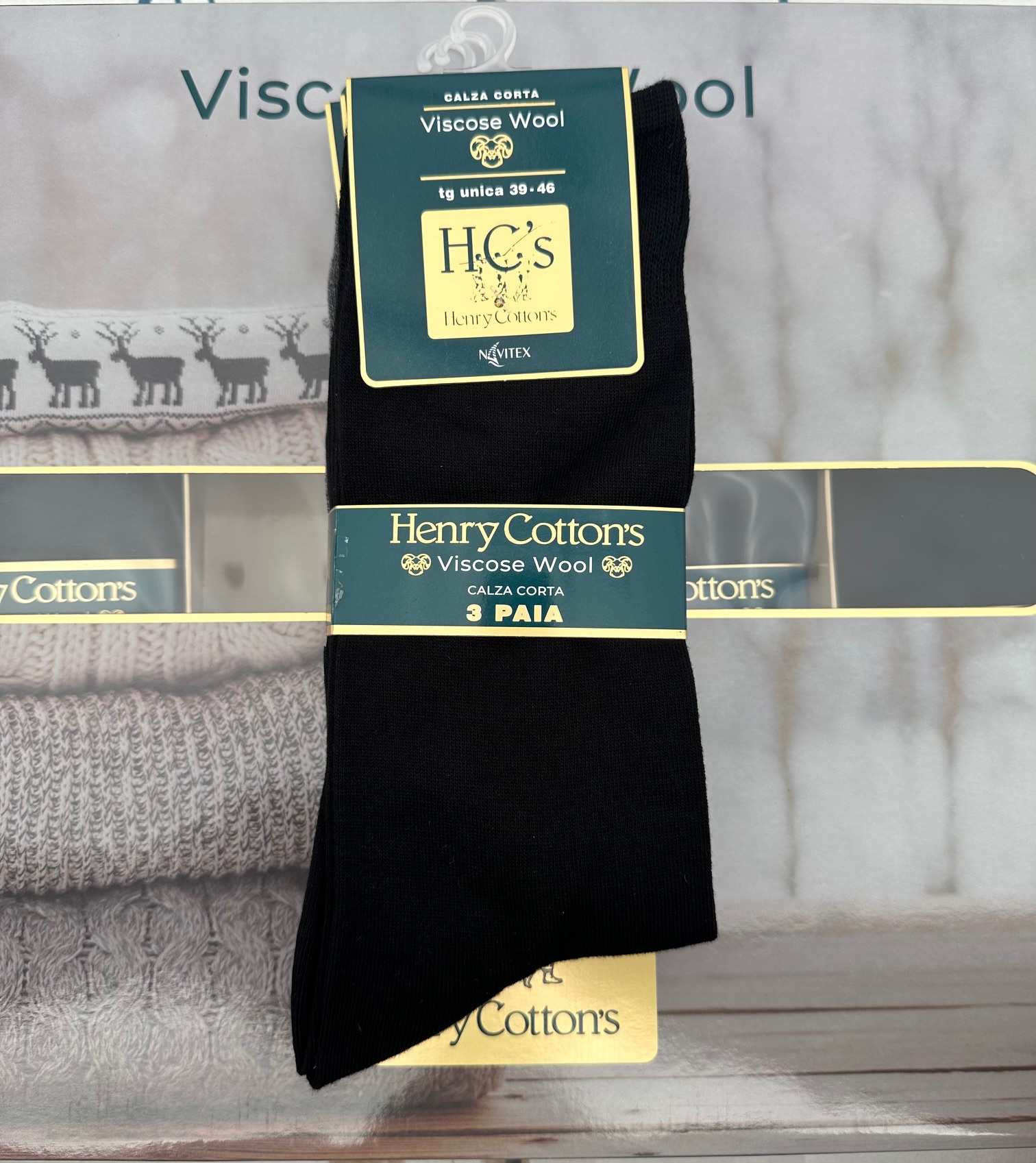 Calza uomo Henry Cotton’s Viscose wool collezione inverno 24/25, disponibile nella variante corta e lunga.